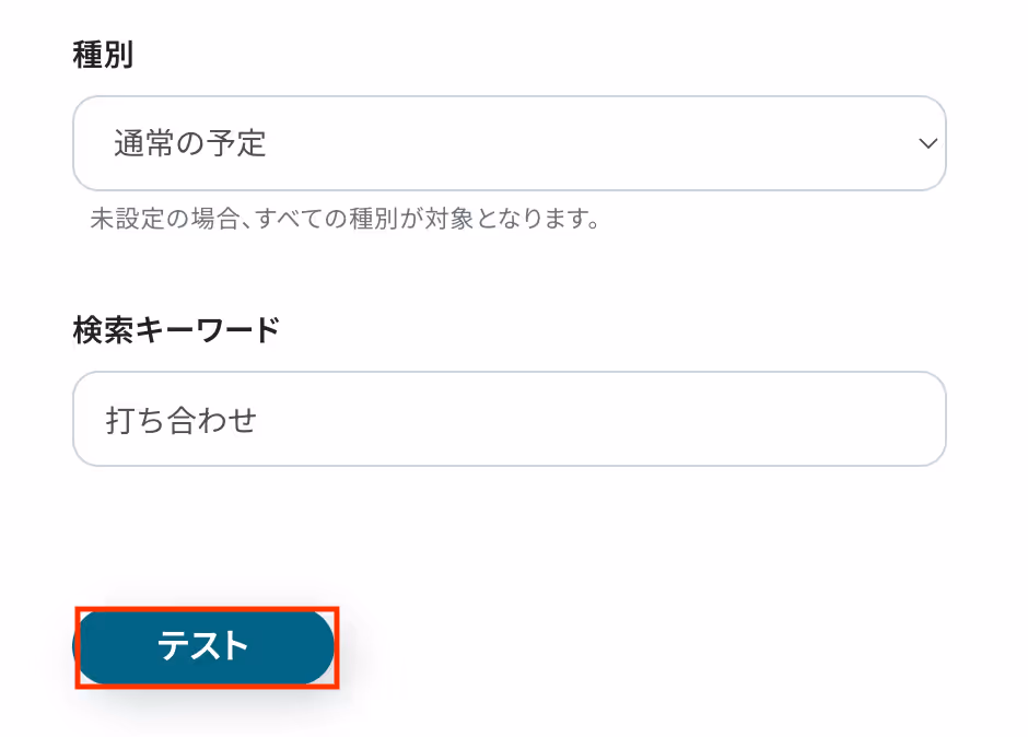 検索キーワード欄には、作成した予定に含まれる特定のキーワードを設定してください。