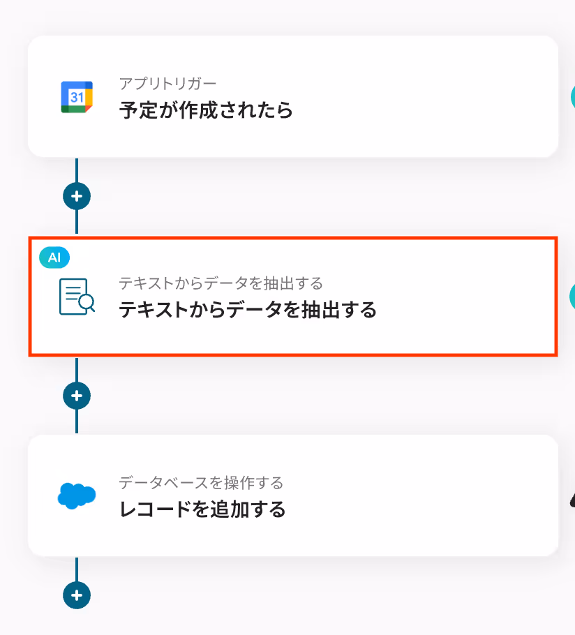 この連携は、予定の詳細情報から氏名や会社名などを自動で抽出する処理を含むため、手作業による転記ミスを防ぎ正確な情報をSalesforceに反映できます。
