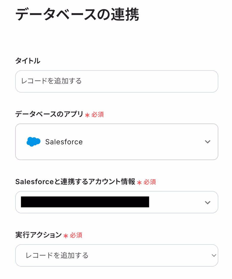 ※なお、テキストを直接入力した部分は固定値とされるため、取得した値を活用せず設定を行うと毎回同じデータがSalesforceに登録されてしまうので注意が必要です。