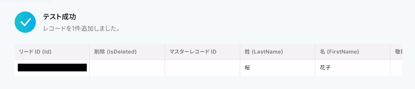 テストが成功すると、登録されたリードの情報が一覧で表示されます。