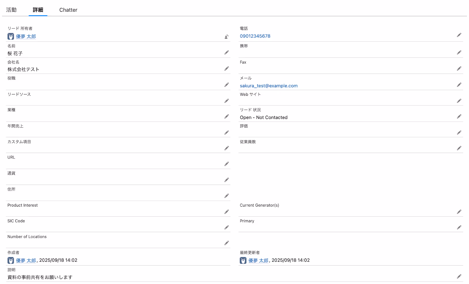 あわせてSalesforceを開き、指定した内容でリードが実際に登録されているか確認してみましょう。