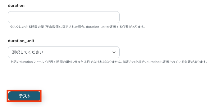 入力が完了したら、設定した内容をもとに、Todoist上にタスクが作成されるか確認するため「テスト」をクリックします。