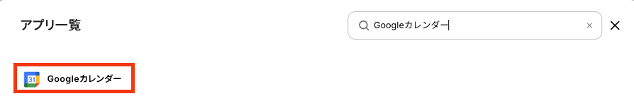 新規接続を押したあと、アプリのメニュー一覧が表示されるのでGoogleカレンダーと検索し対象アプリをクリックしてください。