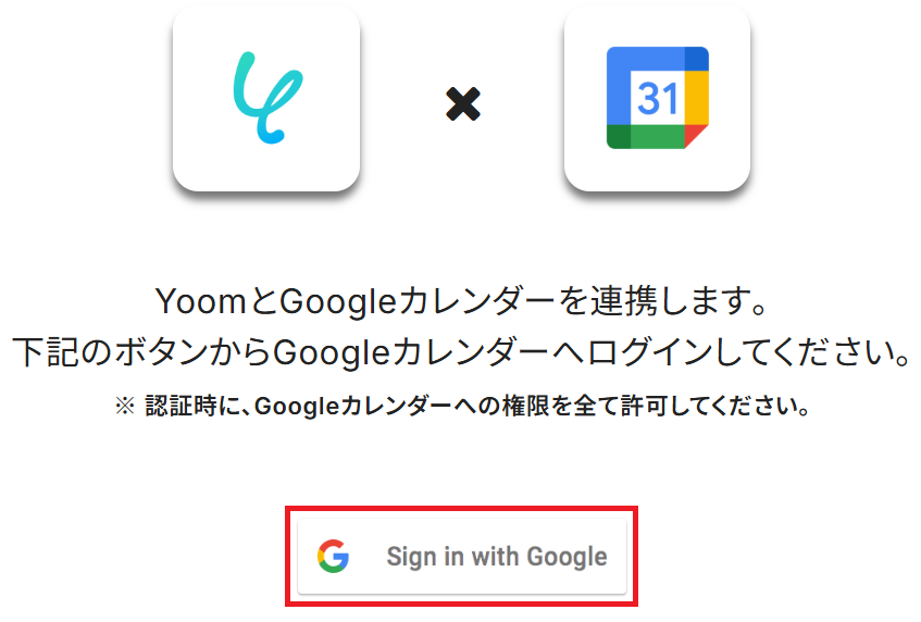 Googleカレンダーを検索すると下記画面が表示されます。「Sign in with Google」をクリックしてください。