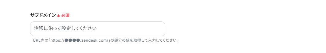サブドメインは枠外の注釈を参考に、ZendeskのURLから取得し設定してください。
