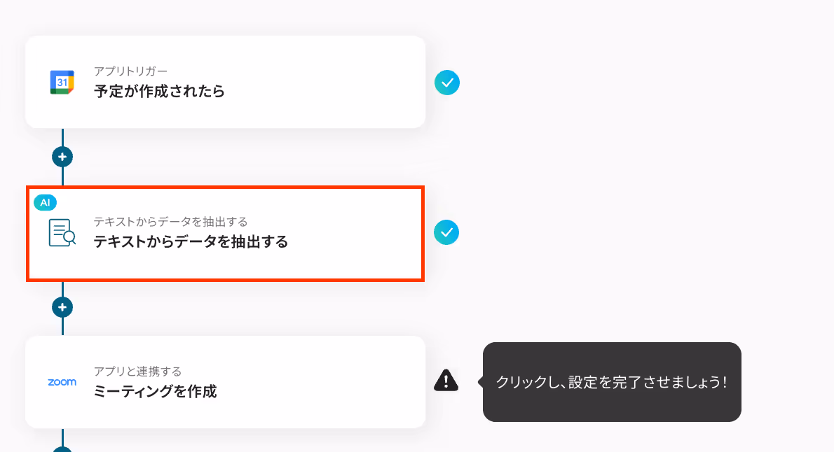 続いて、AI機能を使ってテキストからデータを抽出する設定を行います。