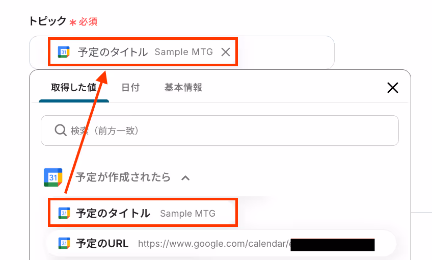 キーワードを設定した場合は、設定したキーワードに一致する予定(イベント)が作成された場合にのみ、フローが起動するようになりますよ!