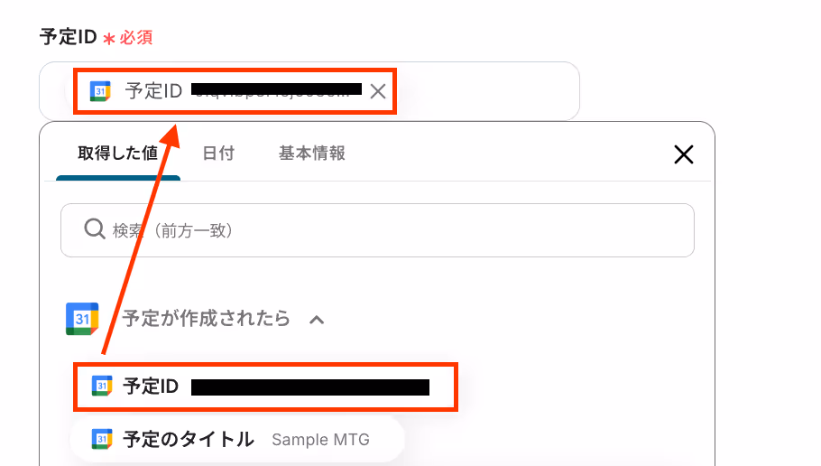 「カレンダーID」は、入力欄をクリックして表示される候補から選択します。