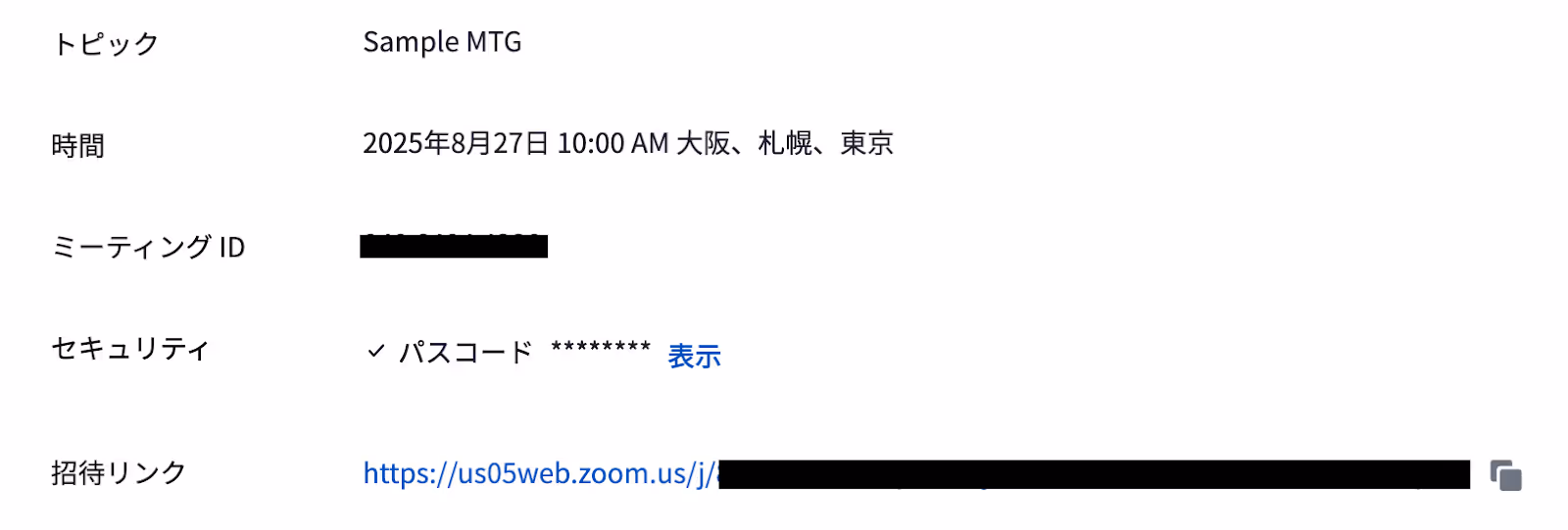 Zoom側で先にミーティングを作成するケースが多い場合は、下記のテンプレートも併せてご利用ください。