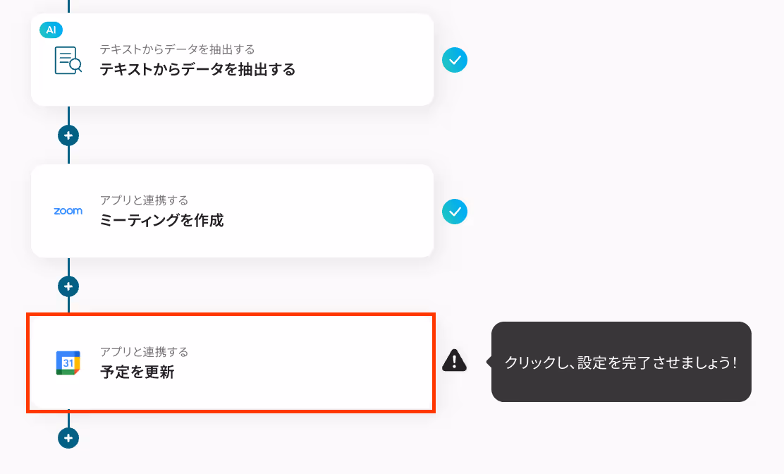 続いて、Googleカレンダーに作成されたイベント情報を基に、Zoomでミーティングを自動作成する設定を行います。