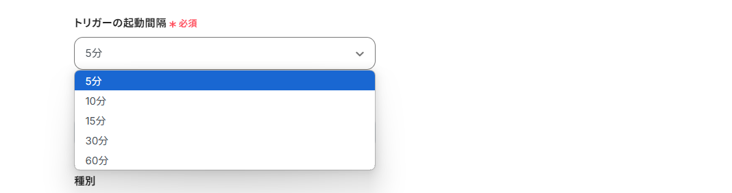 トリガーの起動タイミングは、5分、10分、15分、30分、60分のいずれかで設定できます。