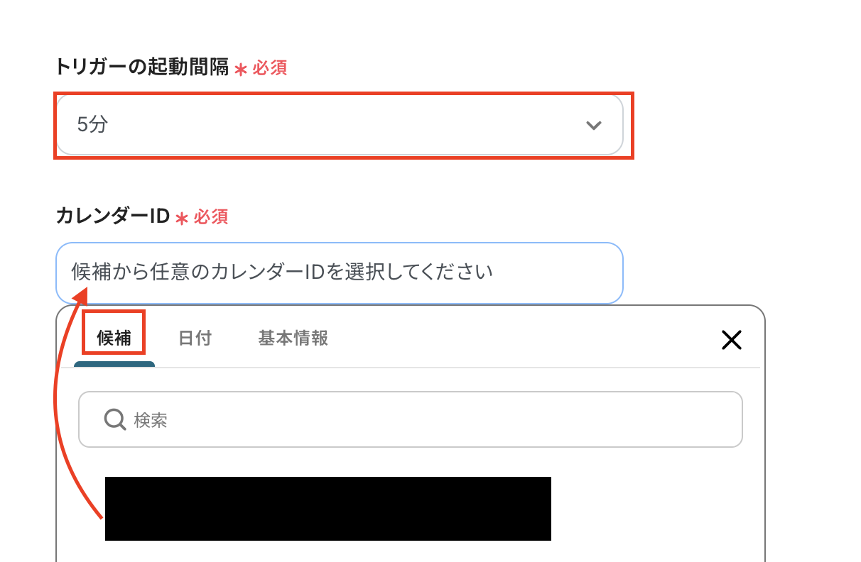 カレンダーIDは候補から選択してください。