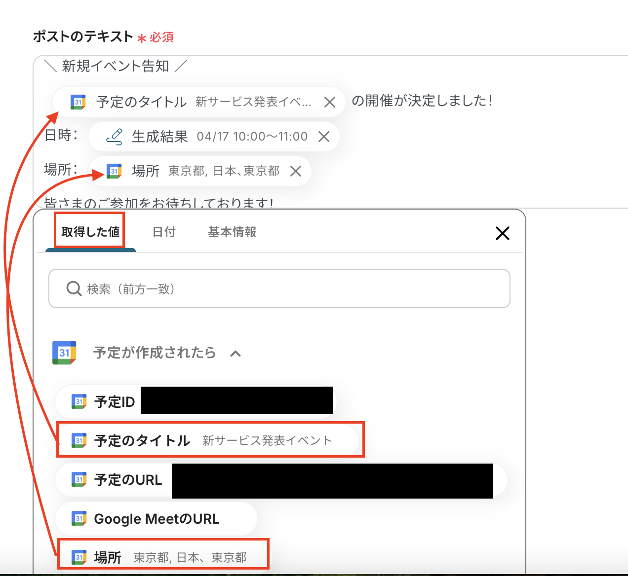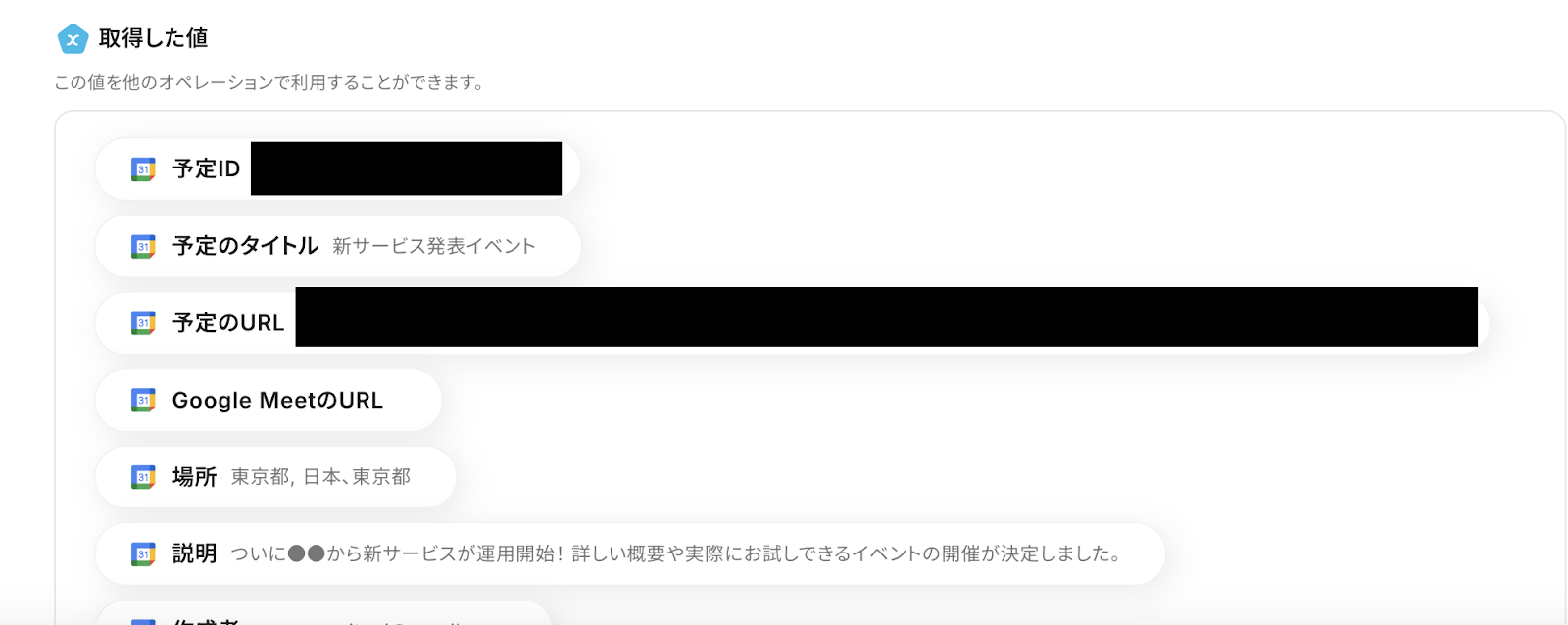 設定後、トリガーとなるアクション(予定を作成)を実行し、テストを実行してください。