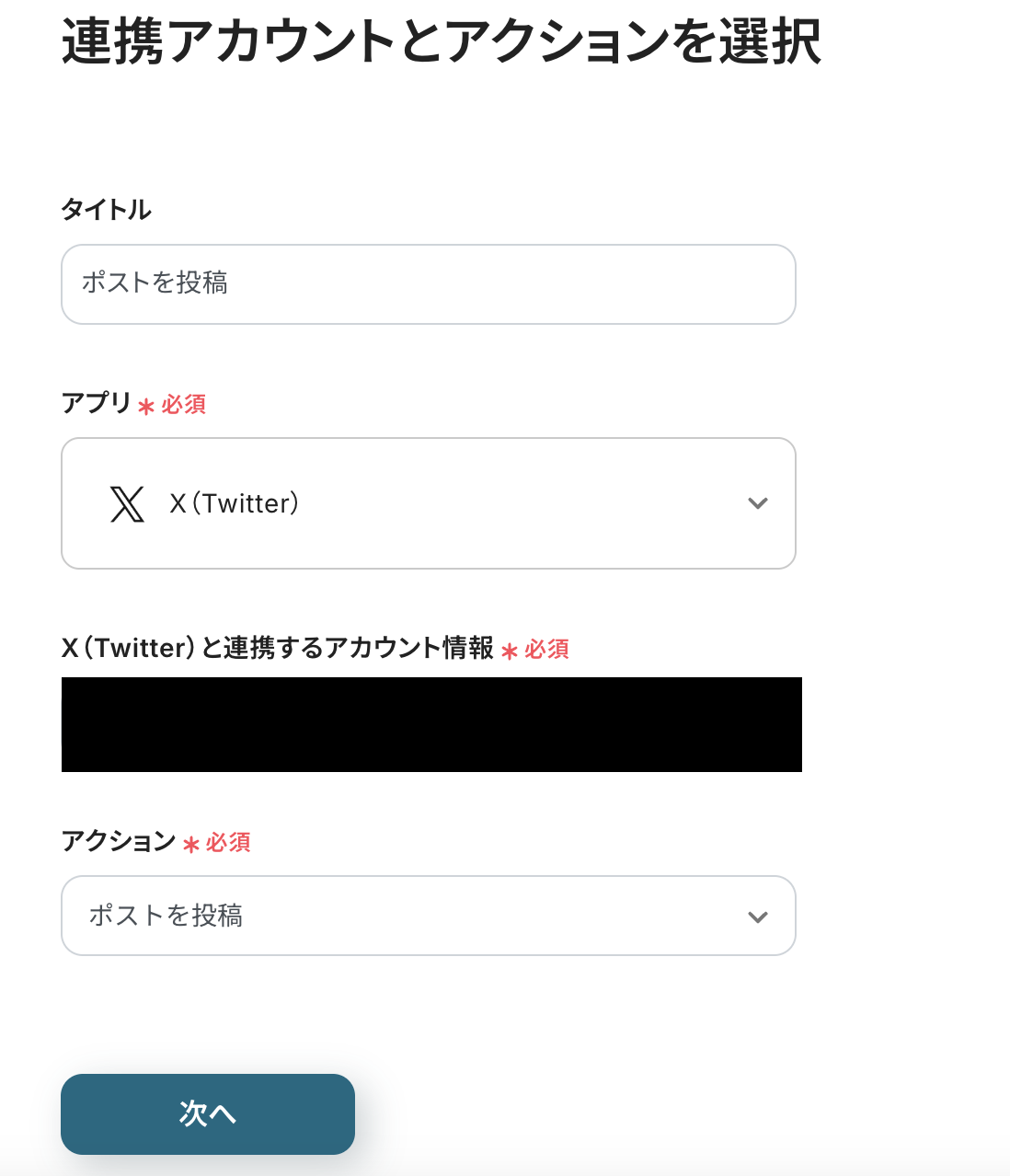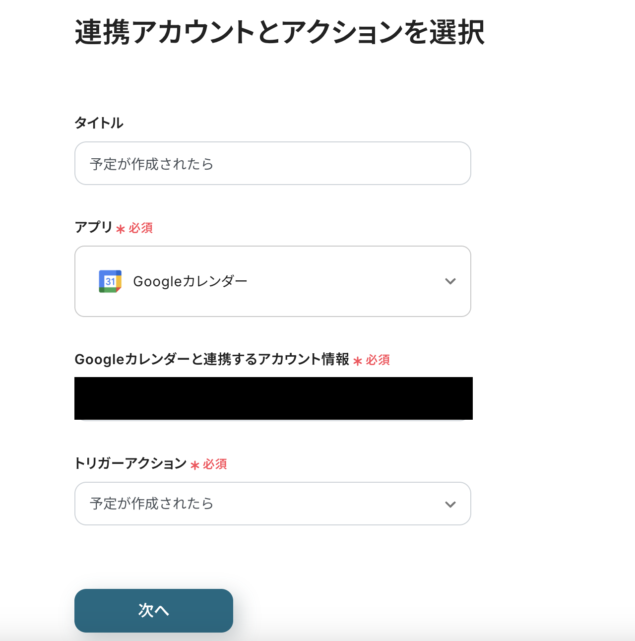連携アカウントとアクションを選択