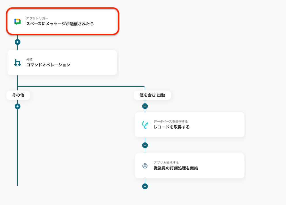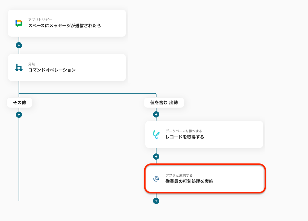 これでGoogle Chatで特定のメッセージが送信されたら、AKASHIで自動的に打刻されます。