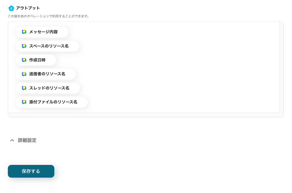 今回は画像のように「チャットツールユニークキー」に、Google Chatの送信者のリソース名を登録しました。