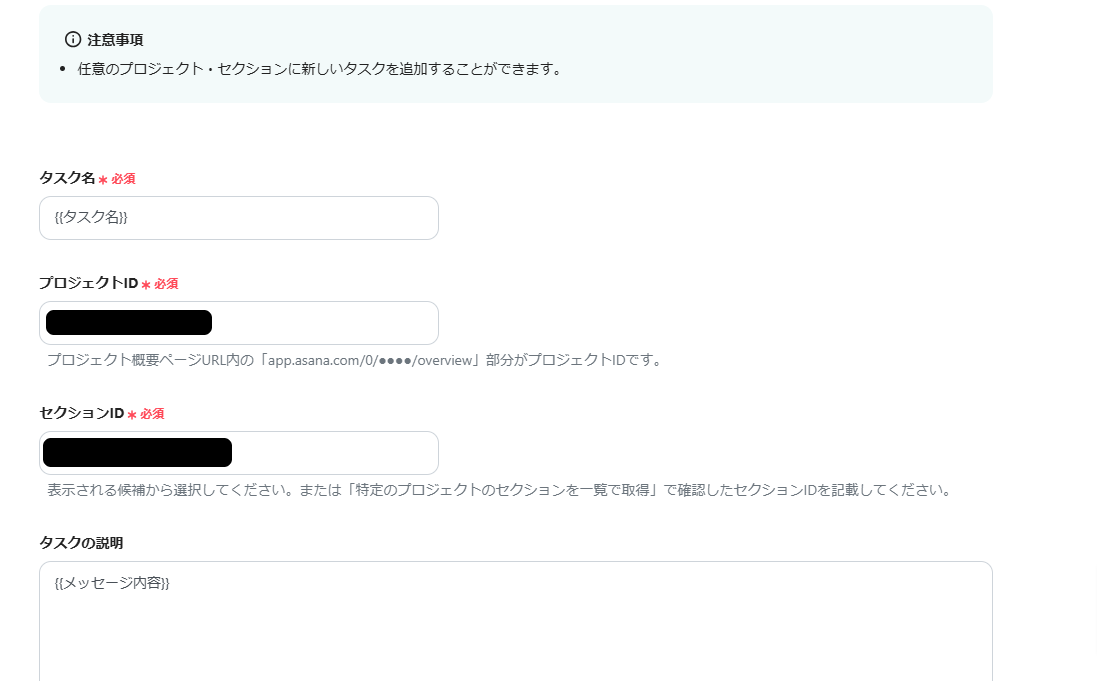 タスク内容を自動でAsanaに登録できるため、手入力の手間を省けるはずです。