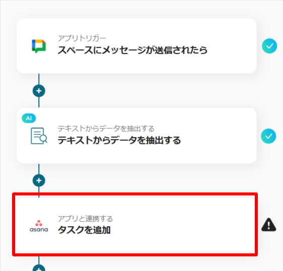 これで、Google Chatに投稿されたメッセージから、Asanaにタスク追加が自動でされるようになりました。