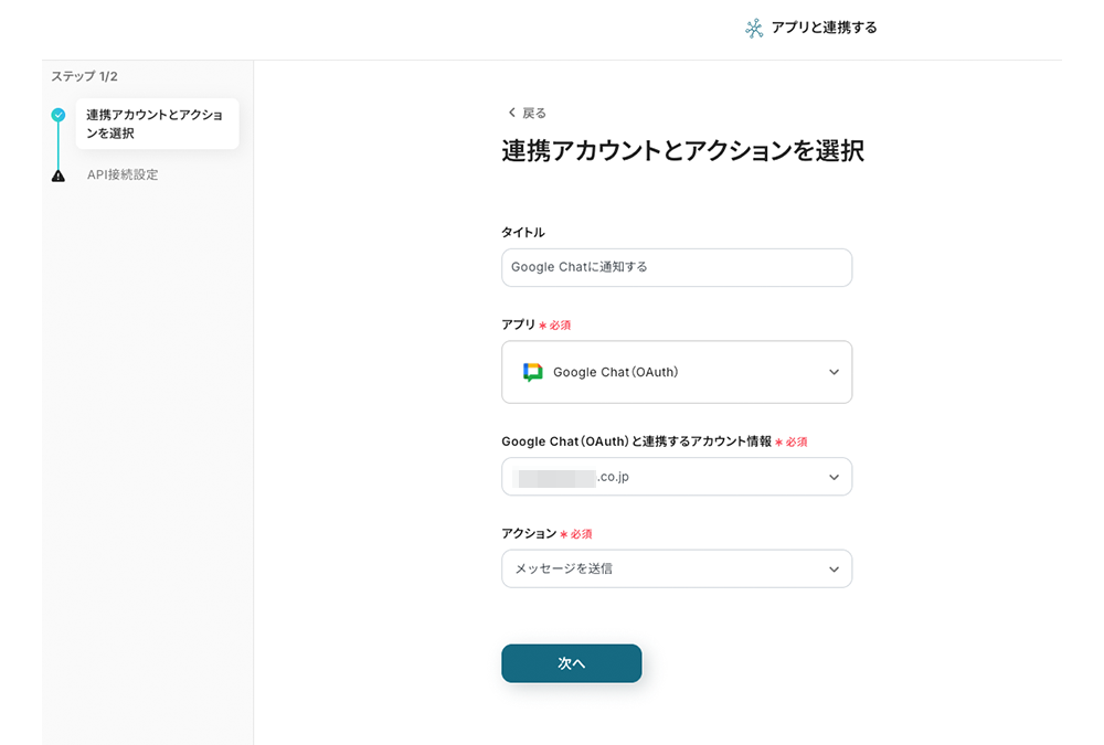 「次へ」をクリックして進みましょう。(2/2)API接続設定