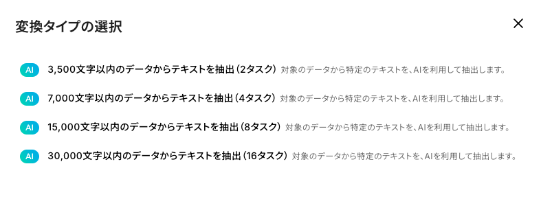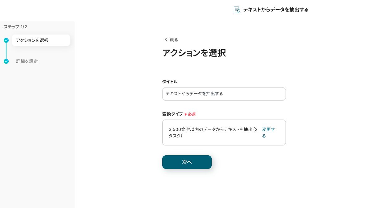 ※AIを使用した「データの抽出」アクションの設定方法もご参照ください。