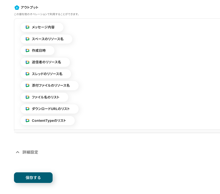 「保存する」をクリックして次に進みましょう。ステップ2:アプリと連携する「Google Chatに通知する」