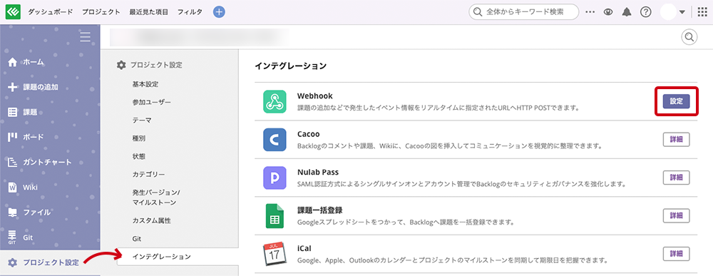 以下の手順をご参照ください。※Backlogのマイアプリ登録がうまくいかない場合は、Backlogのアプリ連携で失敗する場合の確認点をご参照ください。