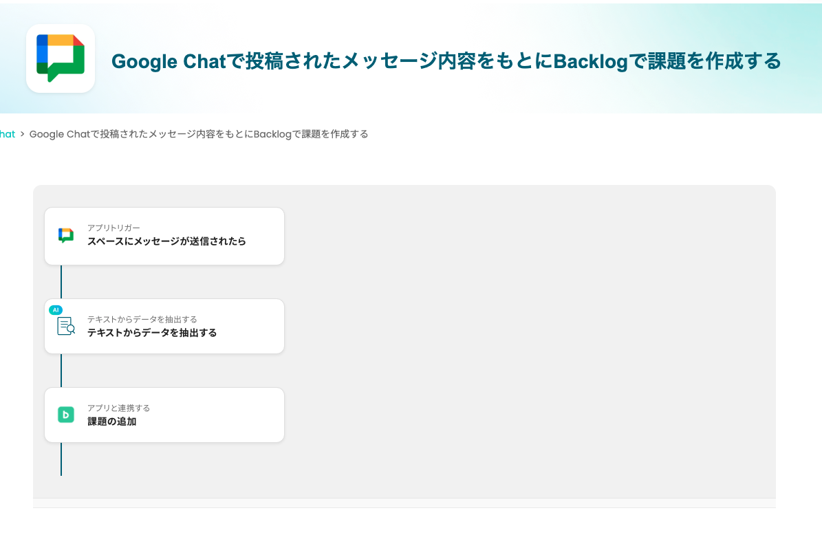 本記事では、「Google Chatで投稿されたメッセージ内容をもとにBacklogで課題を作成する」フローボットの設定方法を解説します。