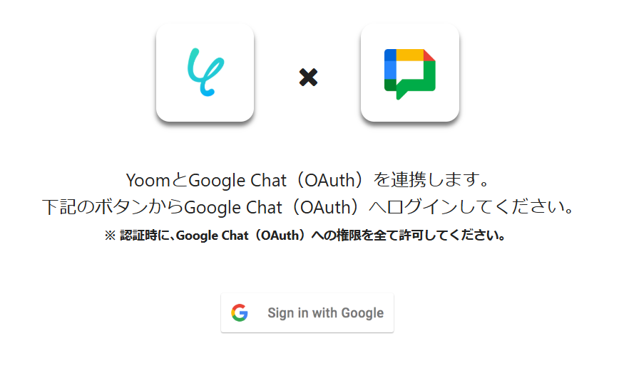 2.続く画面で、Google Chat(OAuth)を検索して選択すると、次の画面に進むため、「Sign in with Google」をクリックします。