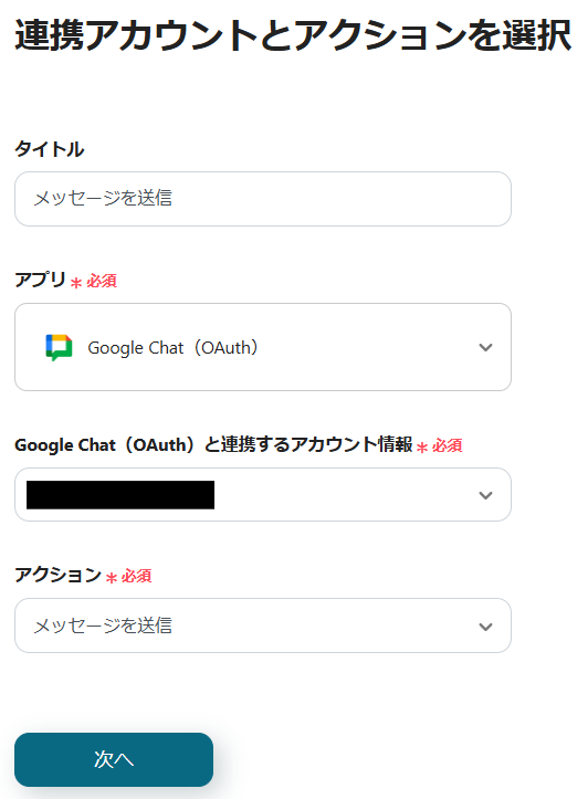 3.Google Chatと連携するアカウントを確認し、「次へ」をクリックします。