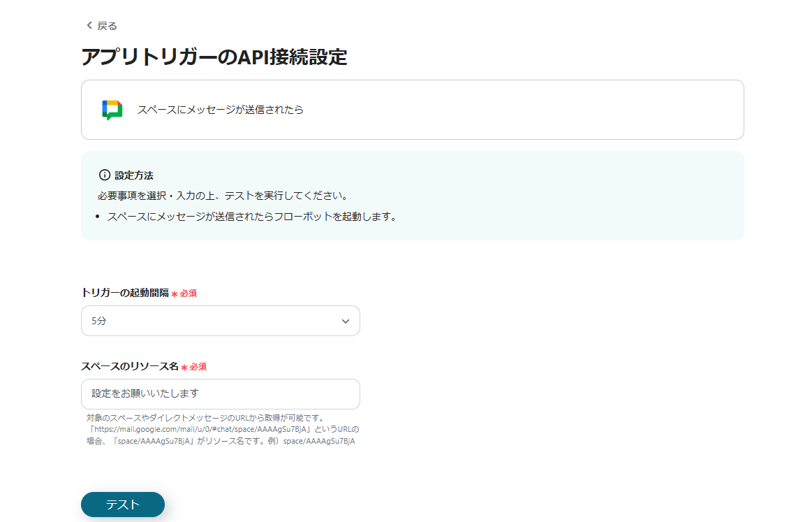 「アプリトリガー スペースにメッセージが送信されたら」をクリックします。