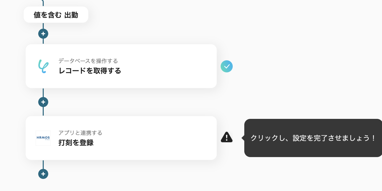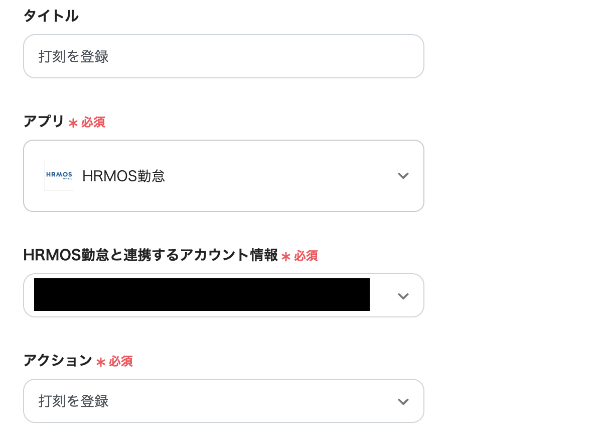 (1)最後に、4つ目のアクション「打刻を登録」をクリックします。