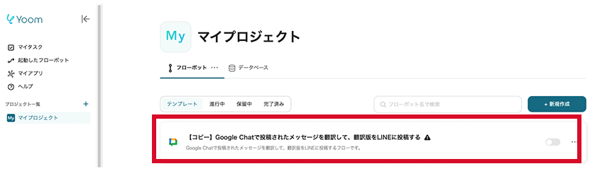 ステップ1 Yoomのテンプレートをマイプロジェクトへコピーする