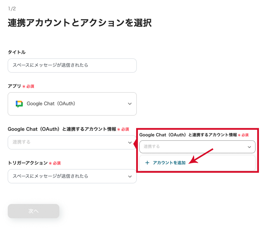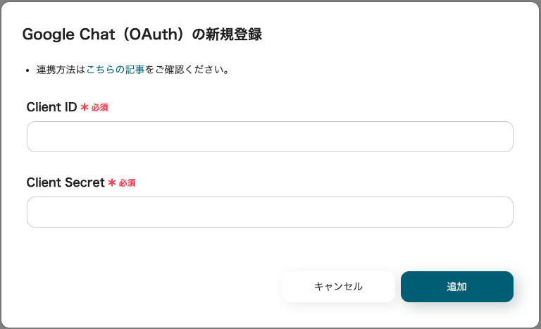 「Google Chat(OAuth)と連携するアカウント情報」は、設定が必要です。