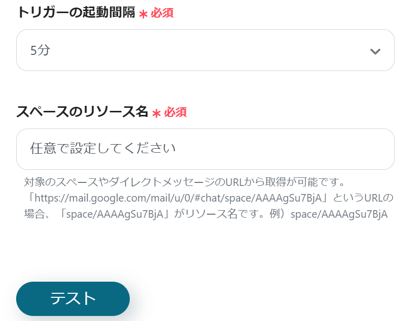 「トリガーアクション」→スペースにメッセージが送信されたら
