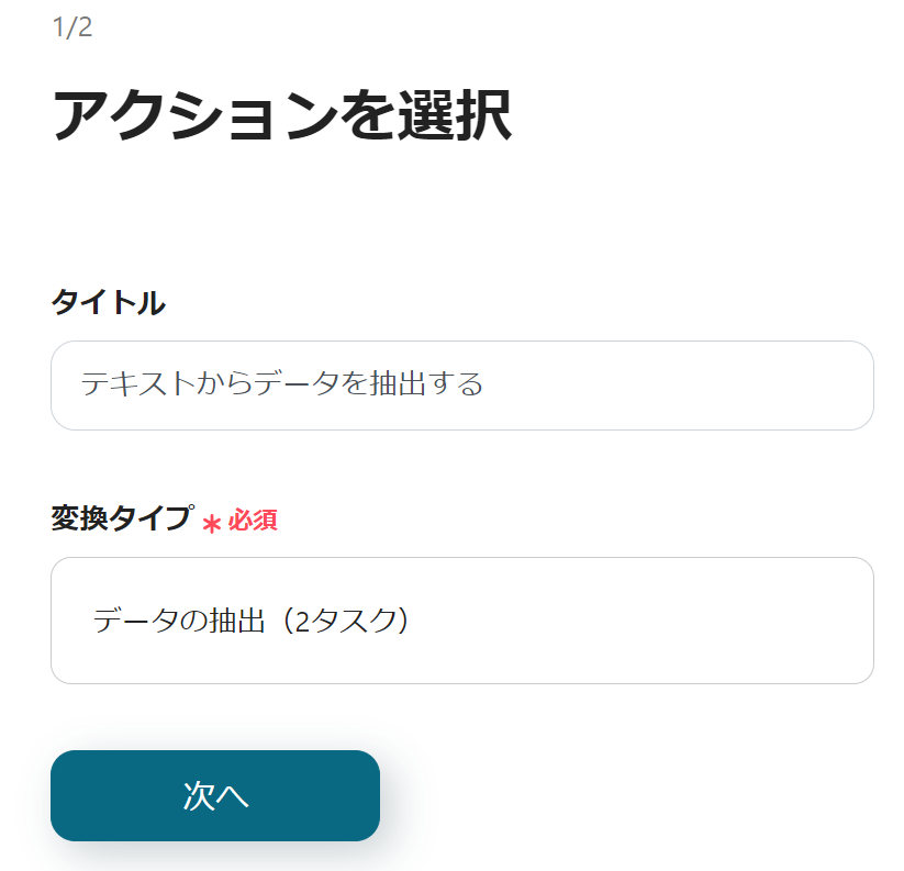 続いて、テキストからデータを抽出する設定を行うので、「テキストからデータを抽出する」をクリックしましょう。