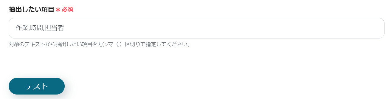 スクロールし、「抽出したい項目」を入力しましょう。