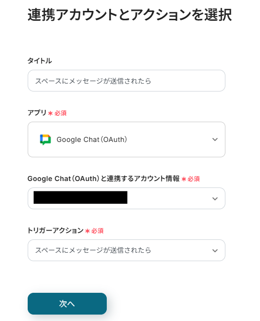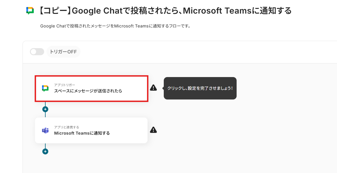 - Google Chatのトリガー設定およびMicrosoft Teamsのアクション設定