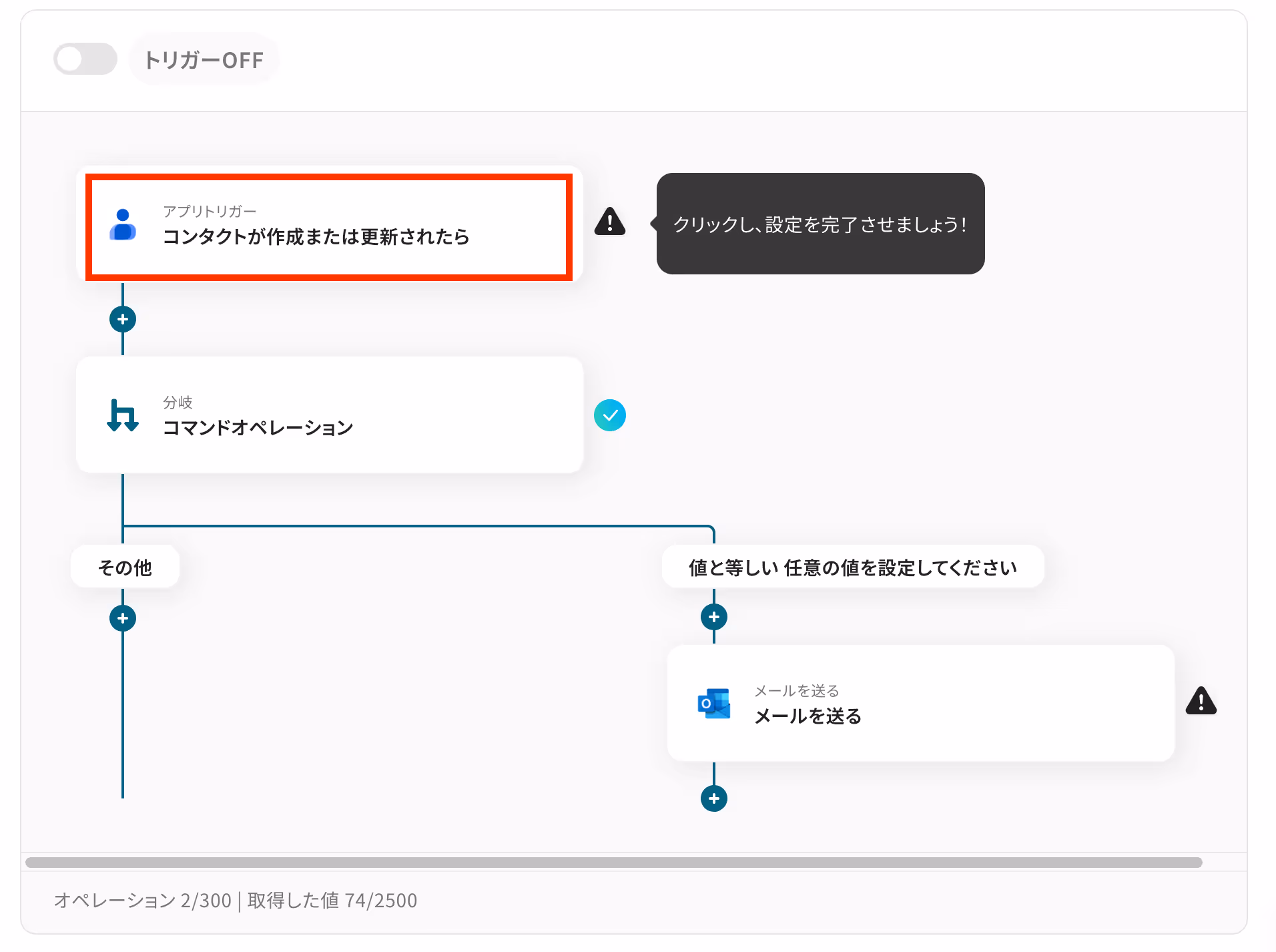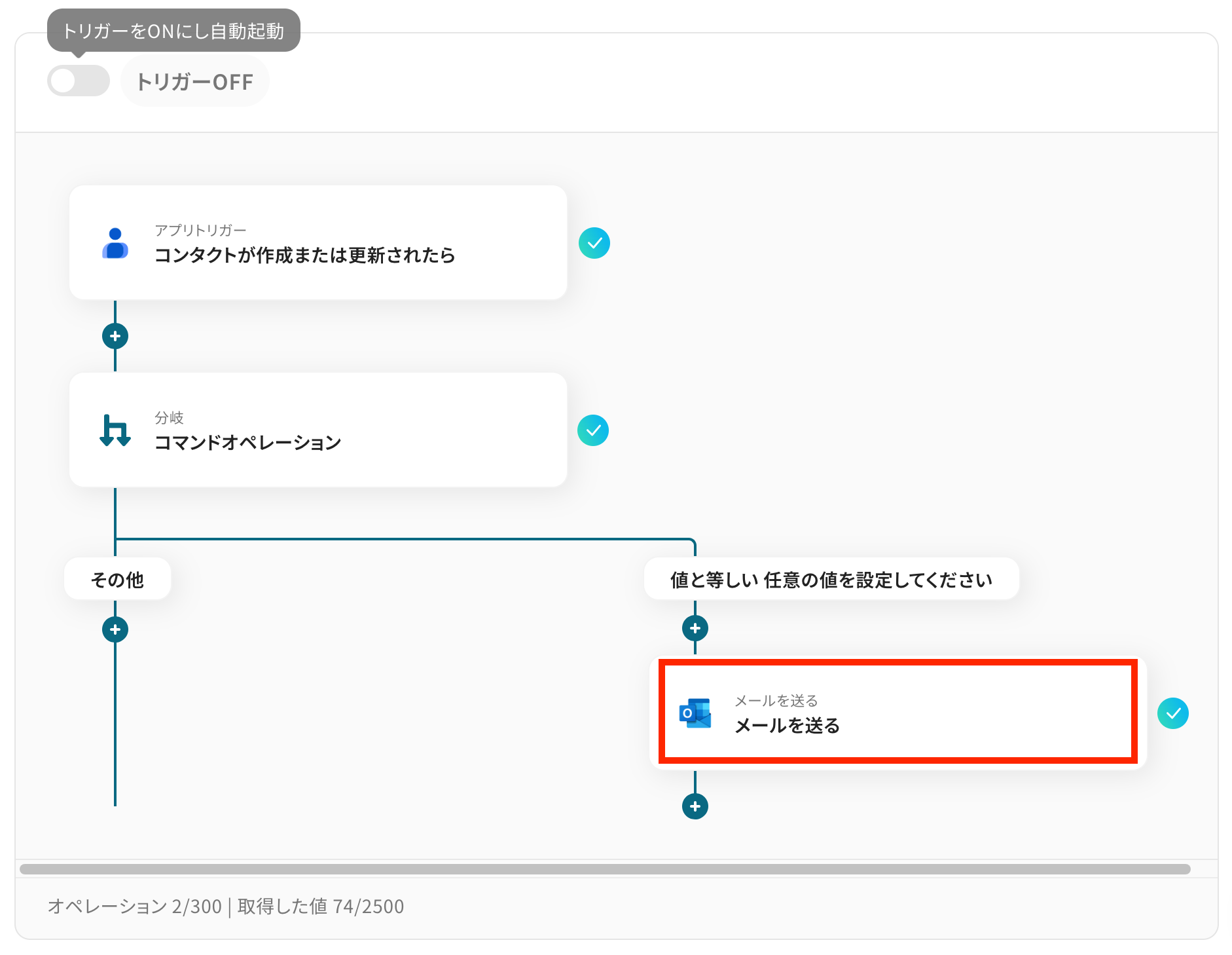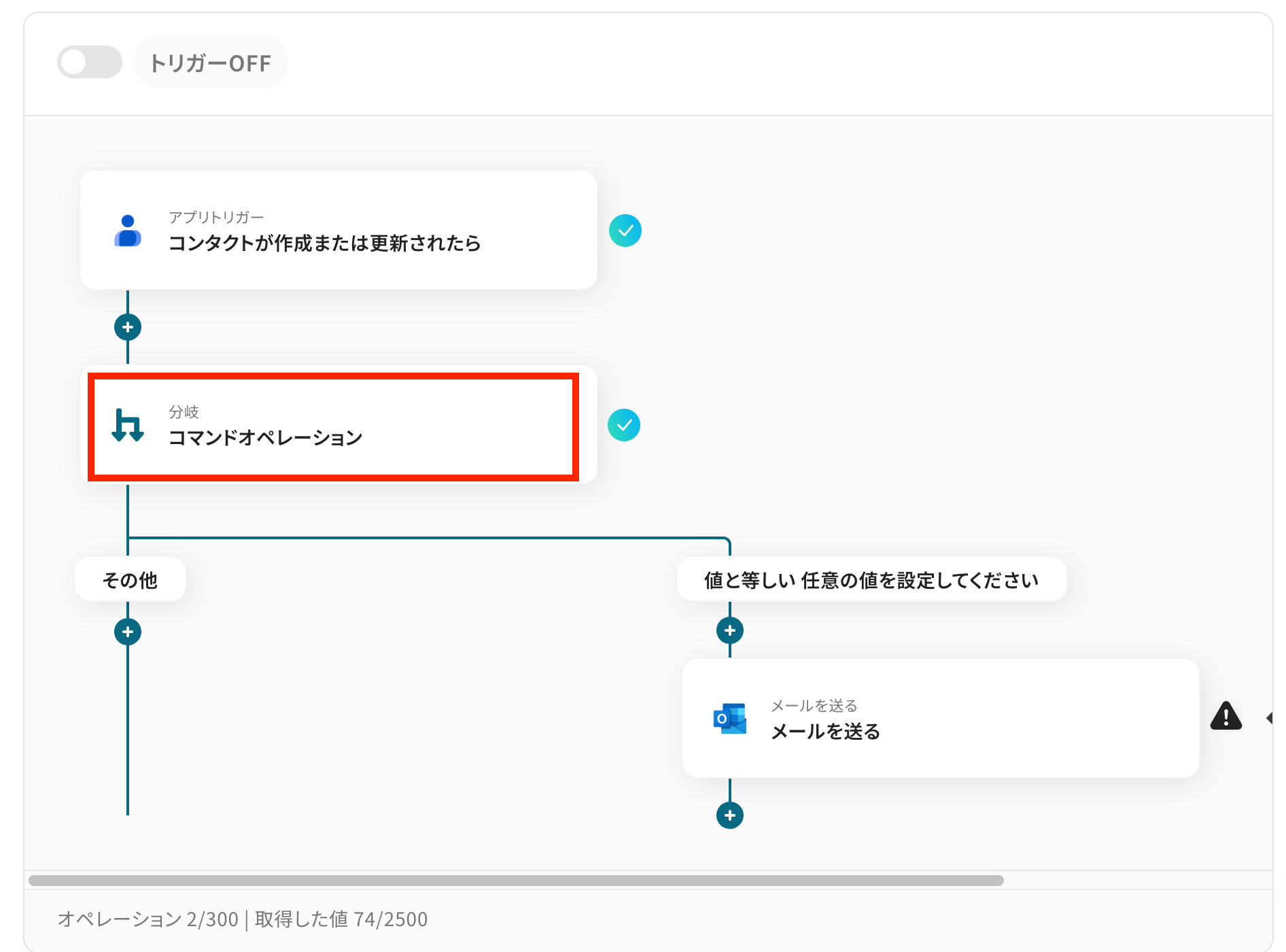 ・「分岐する」オペレーションは、ミニプラン以上でご利用いただけます。フリープランで利用するとエラーになってしまうのでご注意ください。