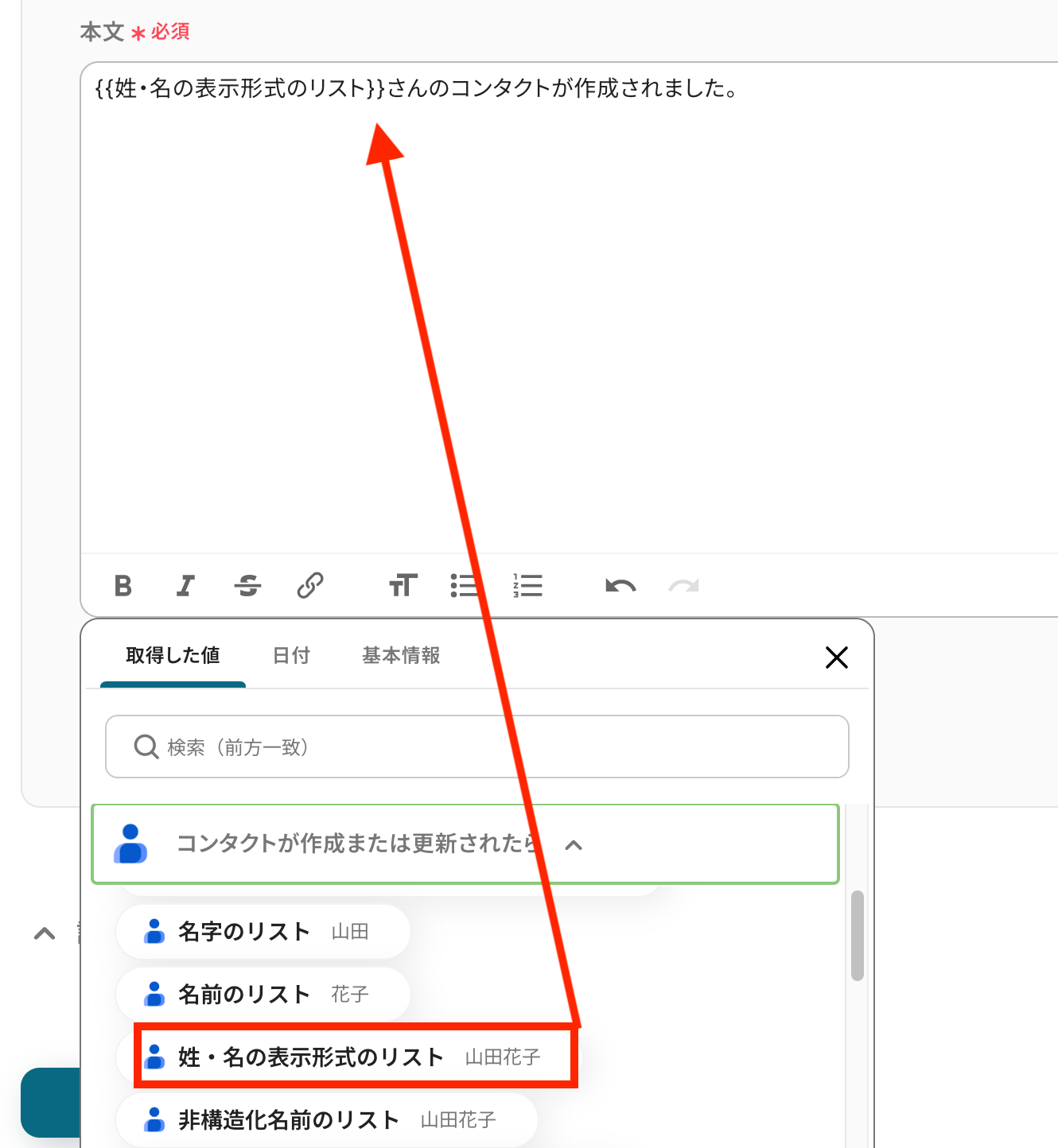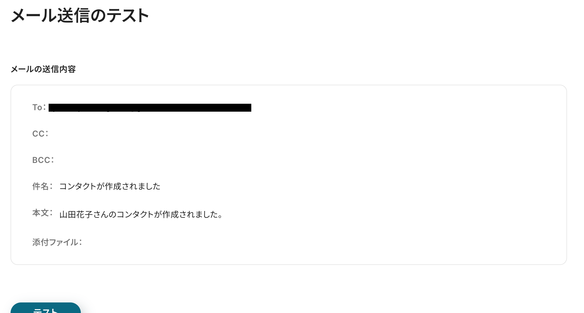 次に、連携テストを行います。トリガー条件を満たす必要があるため、Googleコンタクトに新しく連携先を作成しましょう。