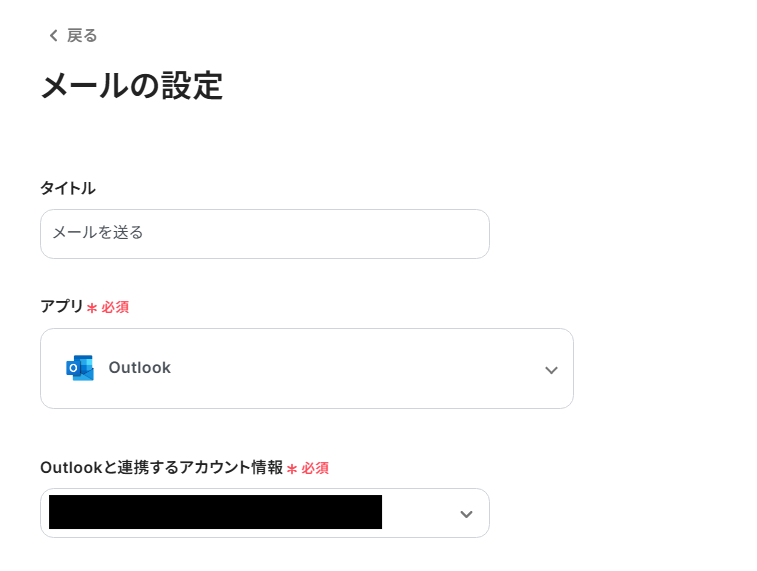 「連携アカウントとアクションを選択」画面では以下を設定します。