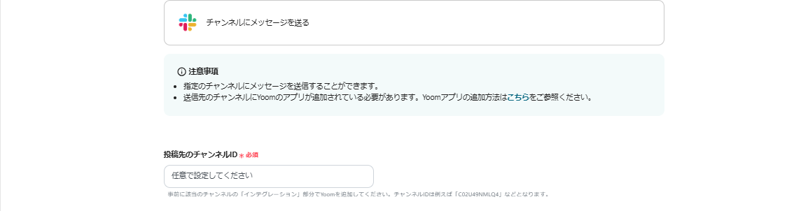 続いて、「チャンネルにメッセージを送る」をクリックし設定してください。