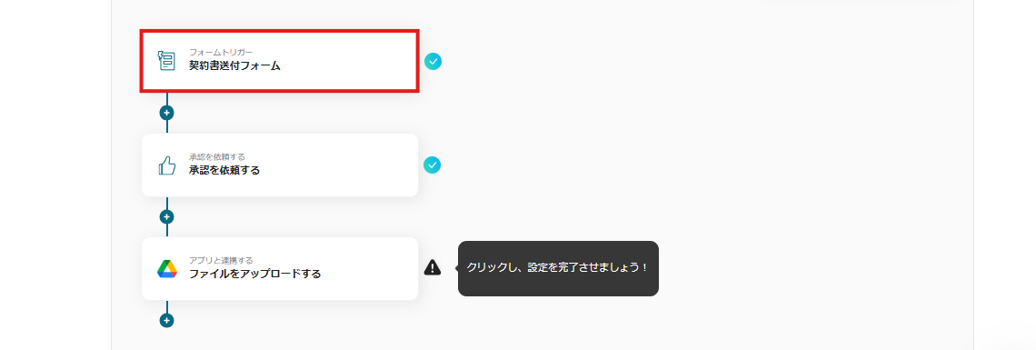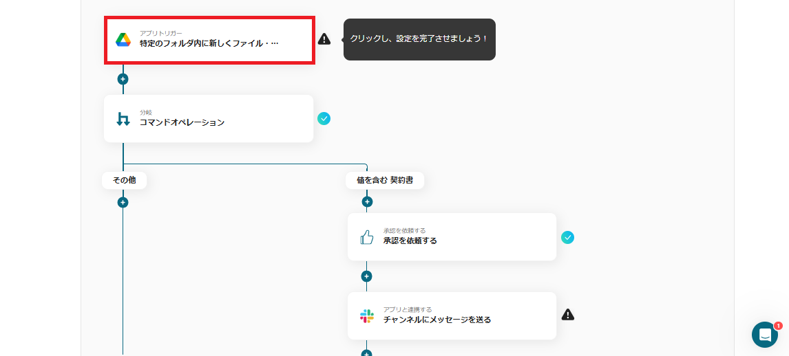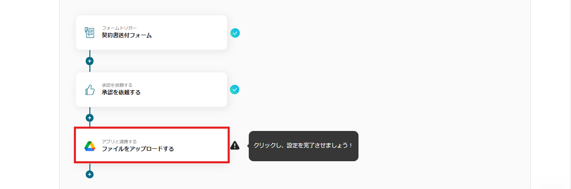まずは、Google Driveにファイルが追加されたら承認依頼して、完了後Chatworkに通知する自動化フローの設定方法をご紹介します。