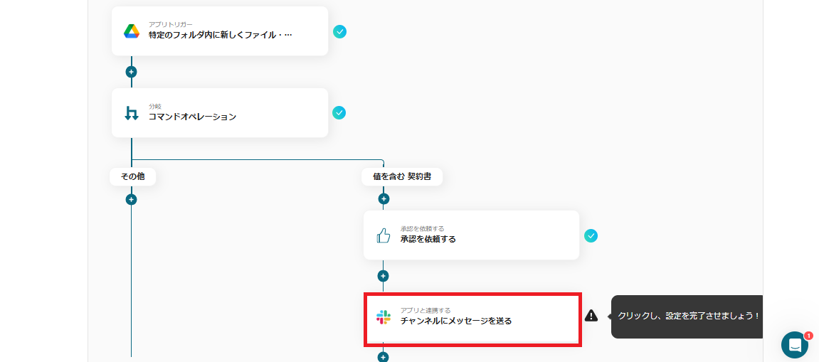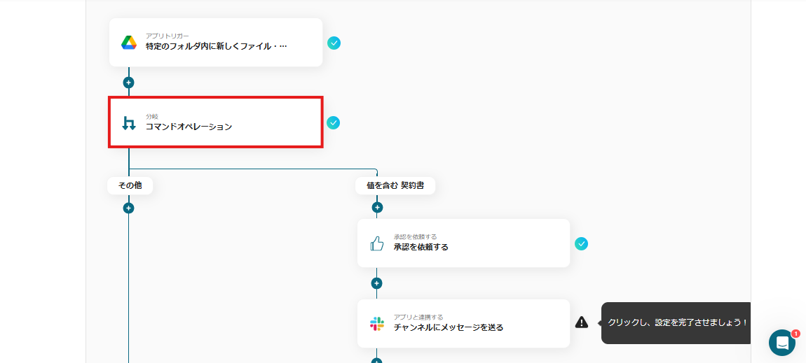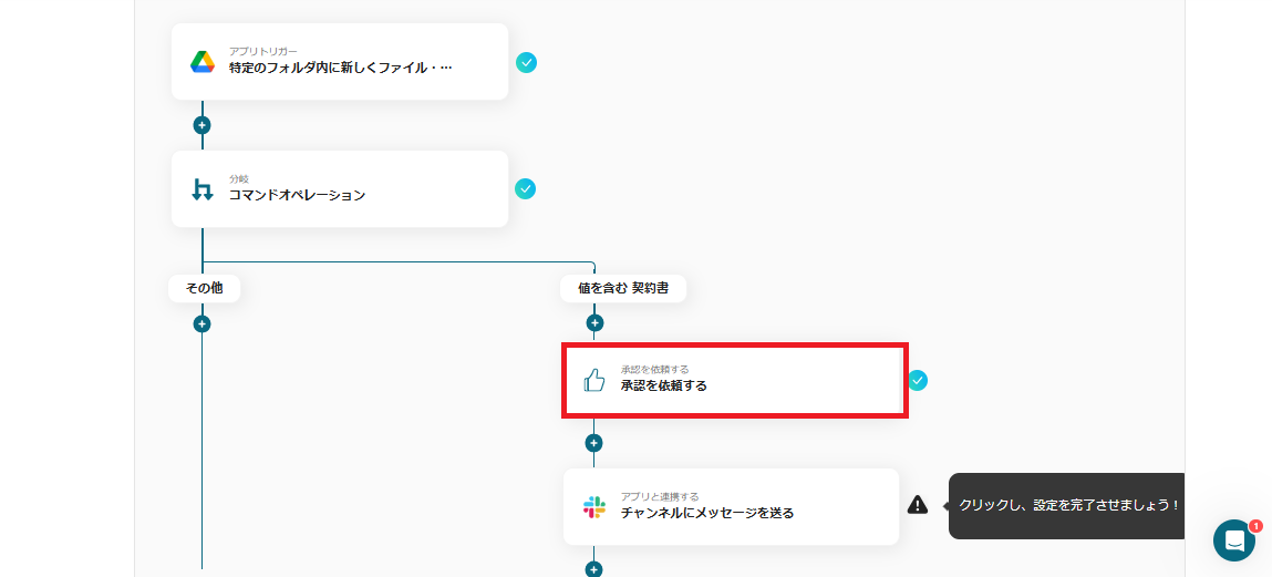 - Google Driveでトリガー設定後、分岐機能・承認依頼機能・Slackでアクションを設定