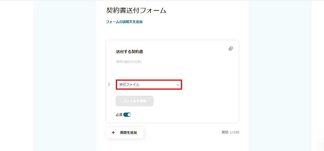 ファイルの添付方法は「アウトプットを使用する」を選択し、ファイルは「送付する契約書」を選択してください。