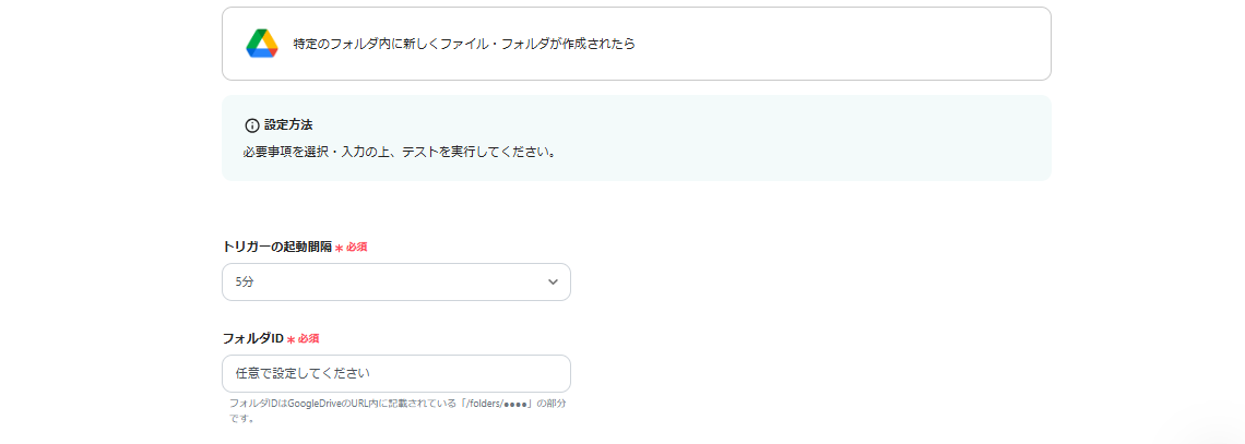 ステップ3:Google Driveで特定のフォルダ内に新しくファイル・フォルダが作成されたら起動するトリガーの設定