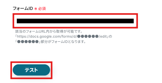 (4) 「フォームID」には、回答を受信したらフローボットを起動させる対象となるGoogleフォームを設定します。