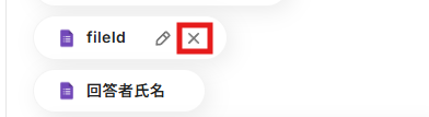 (9) デフォルトで設定されている「fileid」「回答者氏名」は、×ボタンをクリックして削除しておくと、より分かりやすいかもしれませんね!