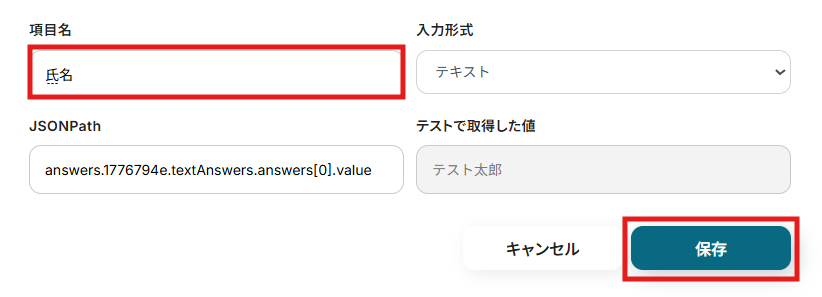(8) 「項目名」を「氏名」「メールアドレス」など分かりやすい名前に変更し、「保存」しましょう。