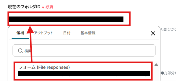 (4) 「現在のフォルダID」に、フォームで受信したファイルが格納されているフォルダのIDを入力します。