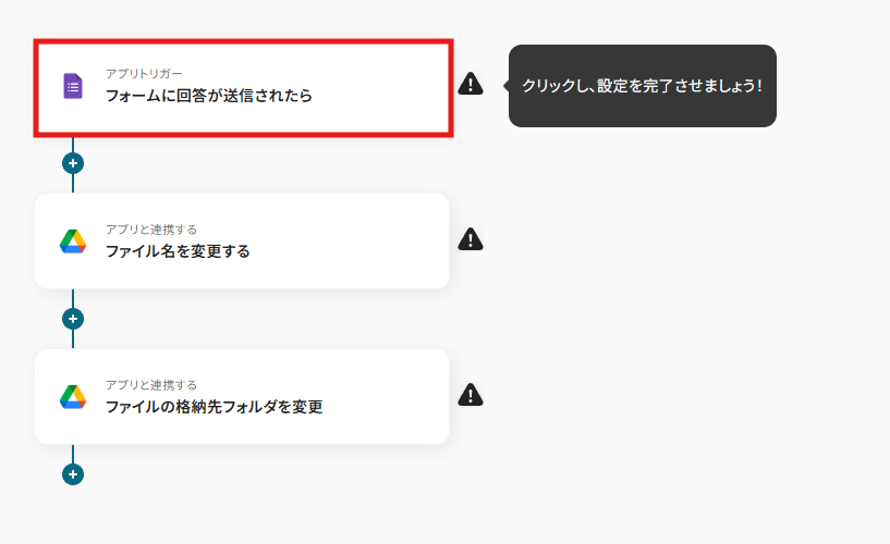 「Googleフォームで受信したファイルを、指定のGoogle Driveのフォルダに移動する」ワークフローは、Googleフォームを通じて受け取るファイル管理を効率化する業務ワークフローです。